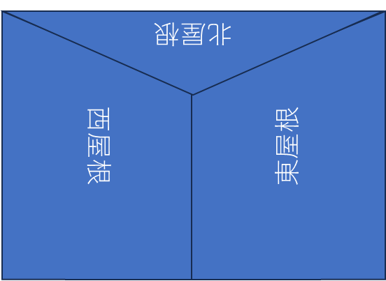 我が家の屋根は、下のように東西北面の屋根から構成されています。素材はスレートです。東西面に太陽光パネルを設置した場合、メーカーにもよりますが大体6kW程度の発電容量になります。反射光による光害が発生したり、夏場を除いてほとんど発電しないため、北屋根にはソーラーパネルを設置しないことが一般的です。筆者宅は東京都のため、東京都の補助金を受けることが可能です。