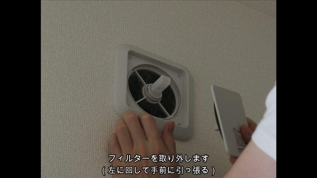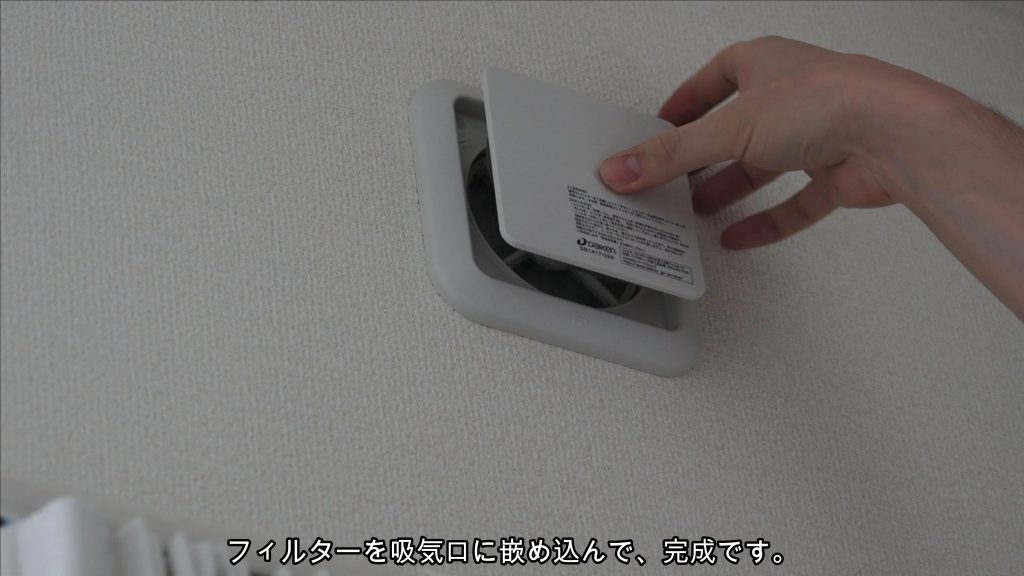 活性炭フィルターの付いたフィルター枠を、給気口にはめ込みます。