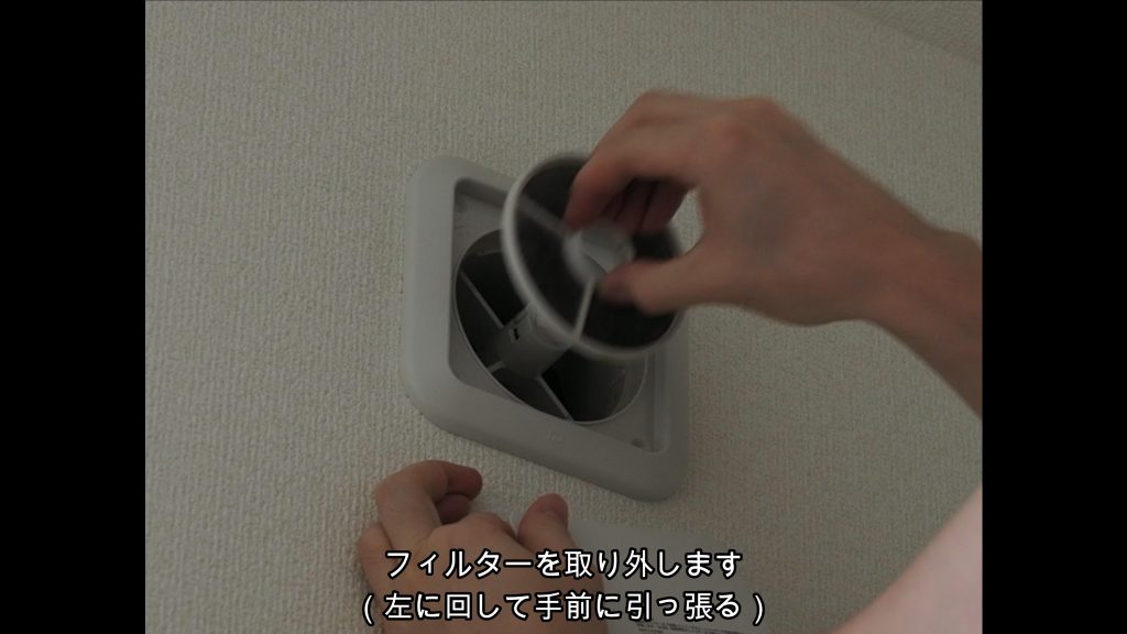 次に、フィルターを左にねじってから手前に引っ張り外します。