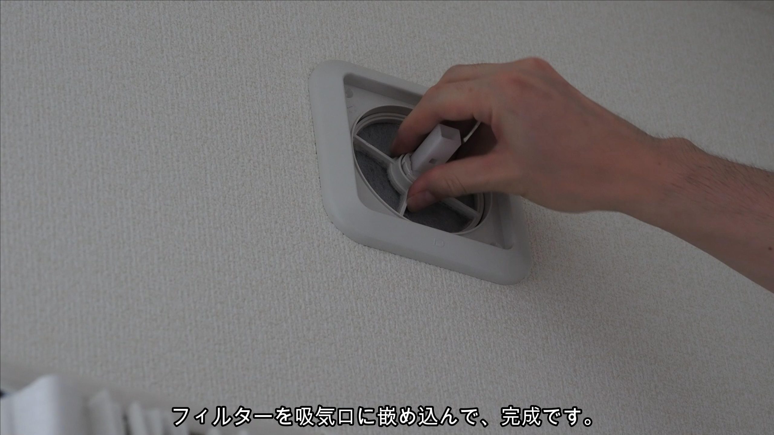 活性炭フィルターの付いたフィルター枠を、給気口にはめ込みます。