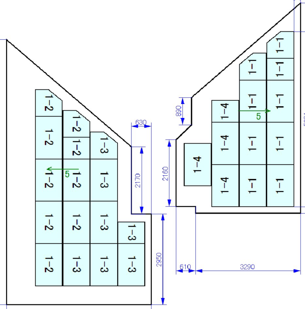 我が家の屋根には、下図のように東西の屋根に長州産業製・Bシリーズの計5.44kWのソーラーパネルが設置されています。