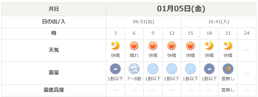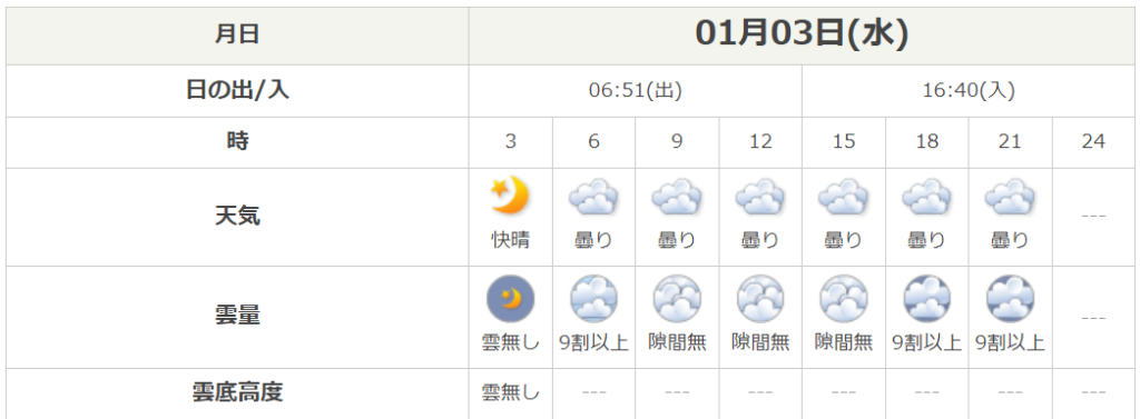 測定日は2024年1月3日、日中は一日中曇りの日です。