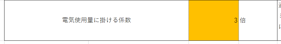 通常、電気使用量に掛ける係数のセルには1倍を入力しておきます。例えば電気使用量が2倍になった場合のシミュレーションを知りたい場合に、このセルに2倍を入力することで簡易的にシミュレーションすることができます。
